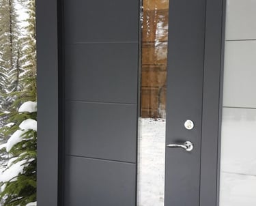 Tvirtos durys su 76 mm storio plienine varčia ir 50 mm akmens vatos apšiltinimu, užtikrinančiu puikią šilumos ir garso izoliaciją. Stiklinimas – 46 mm trigubas stiklo paketas, papildomai saugantis nuo šalčio.